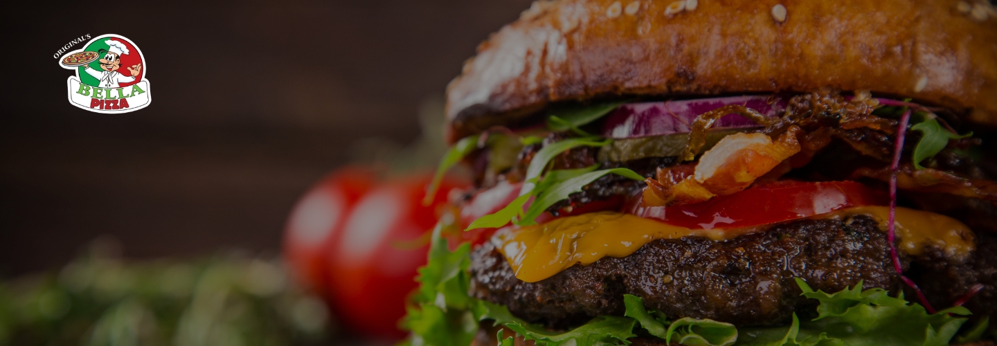 Hamburger, Bacon, Fried Egg, Lettuce, Tomato, Onions, and Avocado
